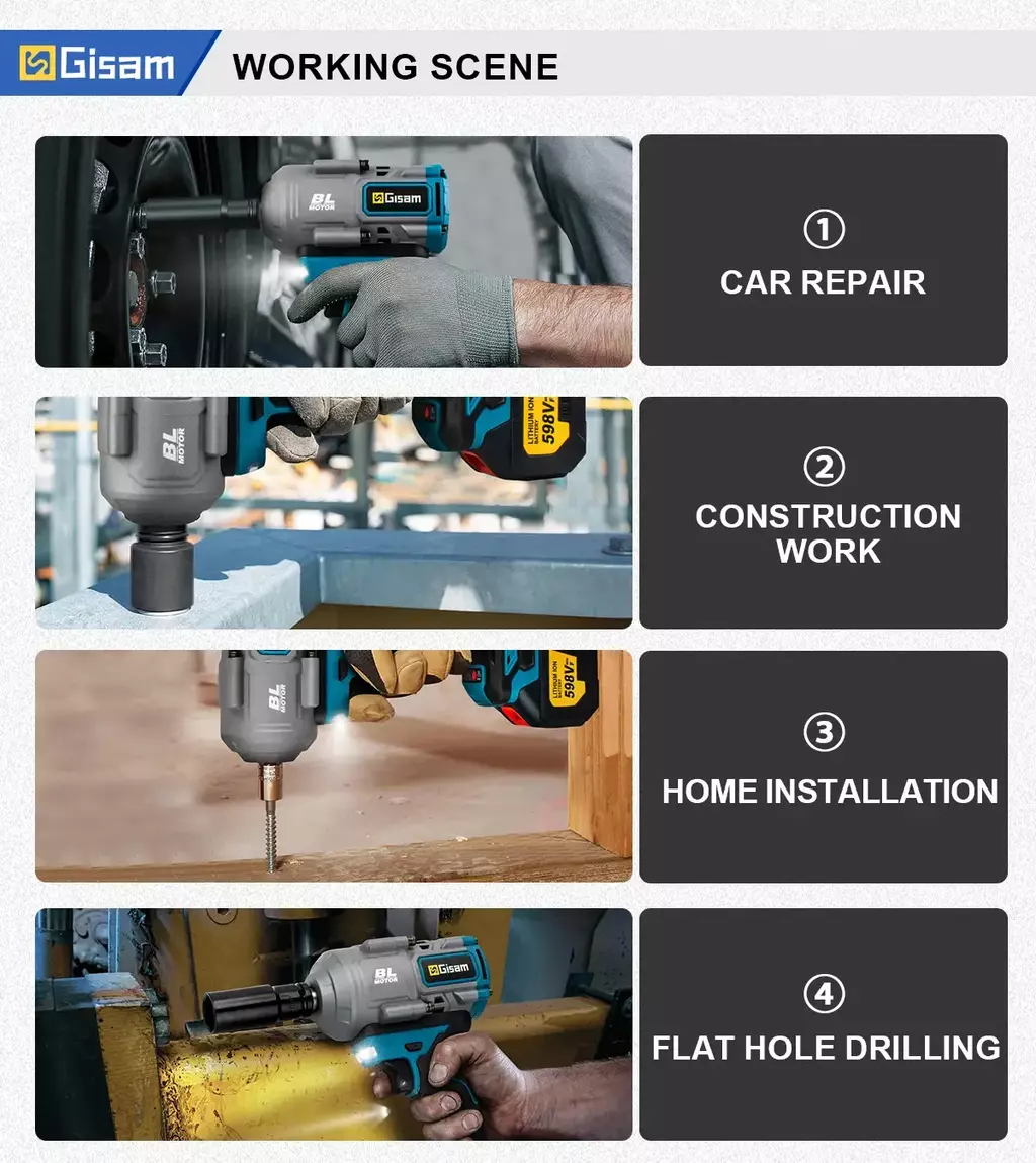 Seja para projetos domésticos, reparos automotivos ou trabalhos profissionais, a Chave de Impacto Gisam oferece a versatilidade necessária para lidar com uma ampla gama de aplicações. Com uma taxa de impacto precisa e controle de torque ajustável, você pode ter a certeza de obter resultados precisos e consistentes em todas as suas tarefas, tornando o seu trabalho mais eficiente e profissional.