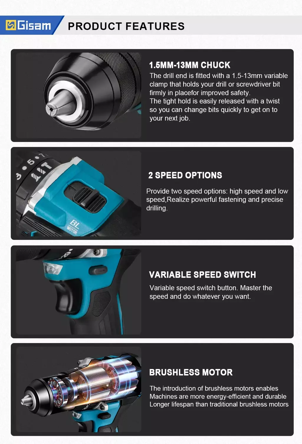 Eleve o nível dos seus projetos de bricolagem e construção com a Furadeira de Impacto Elétrica Gisam 65N.m 13MM 35 + 3 Torque Brushless. Seja você um entusiasta do DIY ou um profissional experiente, esta ferramenta versátil e potente irá ajudá-lo a alcançar resultados excepcionais com facilidade e eficiência. Adquira já a sua e descubra o que é possível realizar com a combinação perfeita de desempenho, versatilidade e durabilidade! 🔧